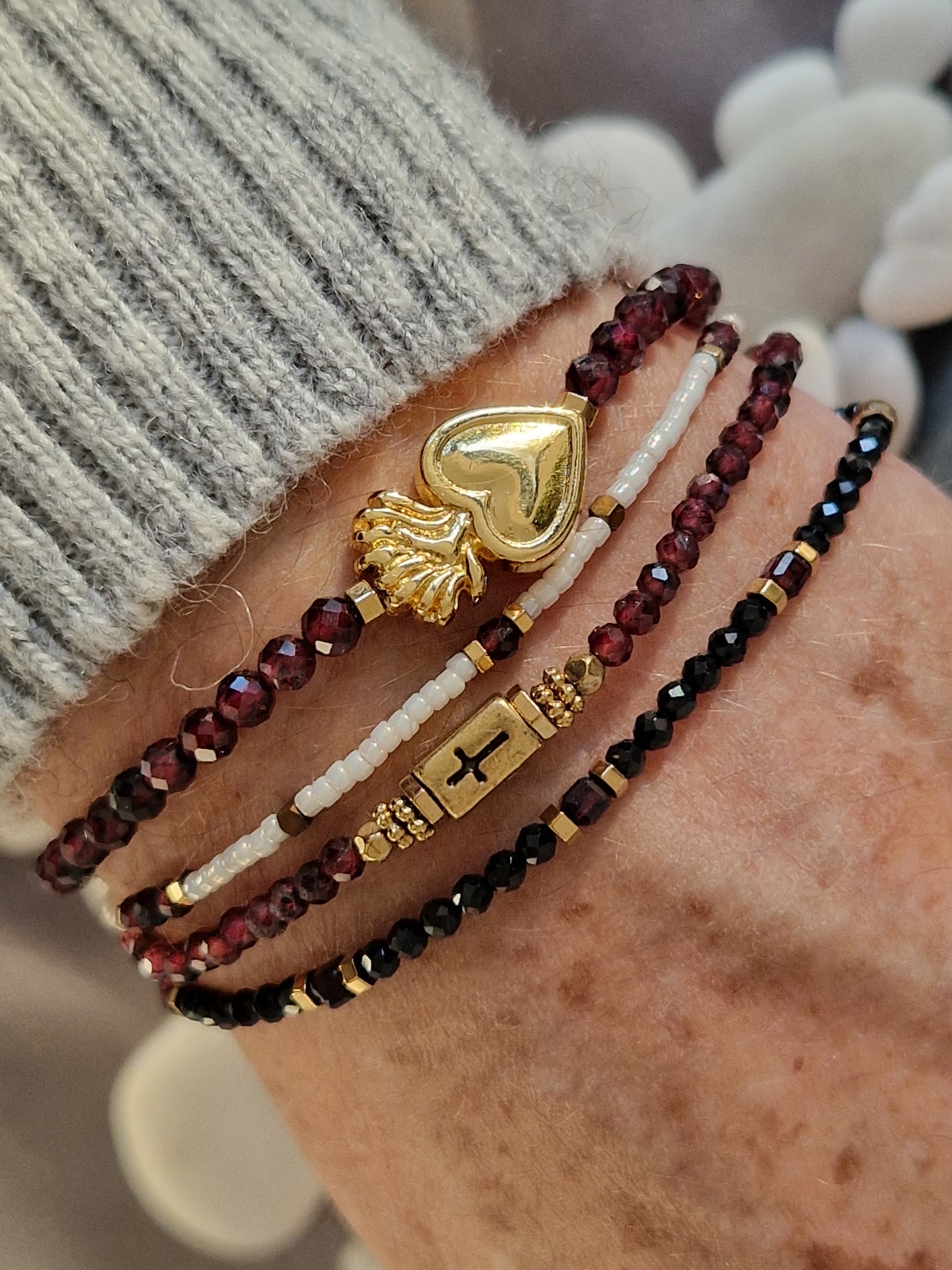 Le bracelet Lily est une création lumineuse et chatoyante avec ses perles facettées en grenat qui scintillent avec grâce et ses détails dorés.