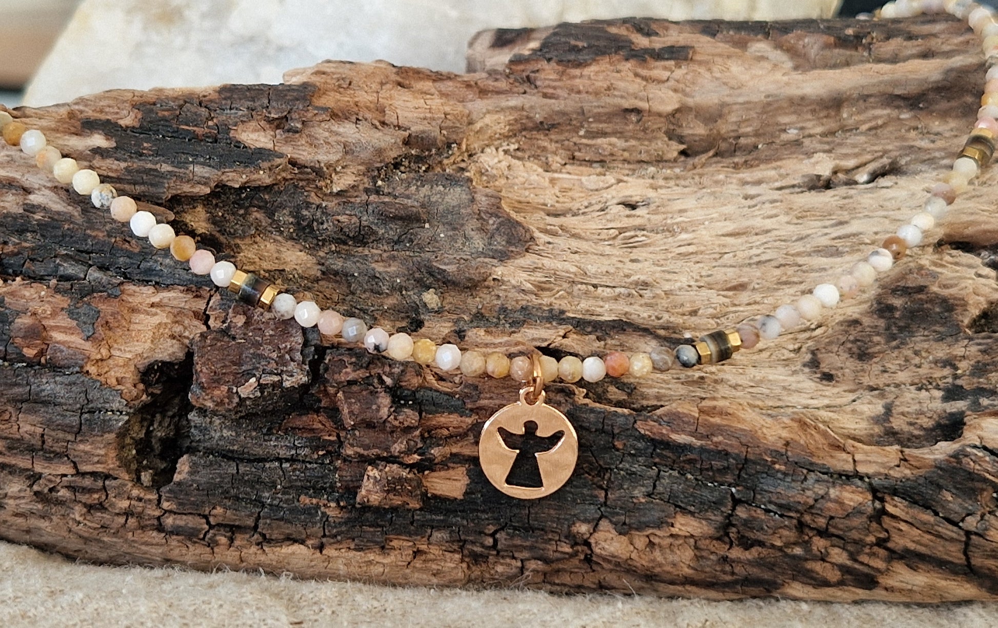 Collier "Rose Céleste" - Opale & Pendentif Ange