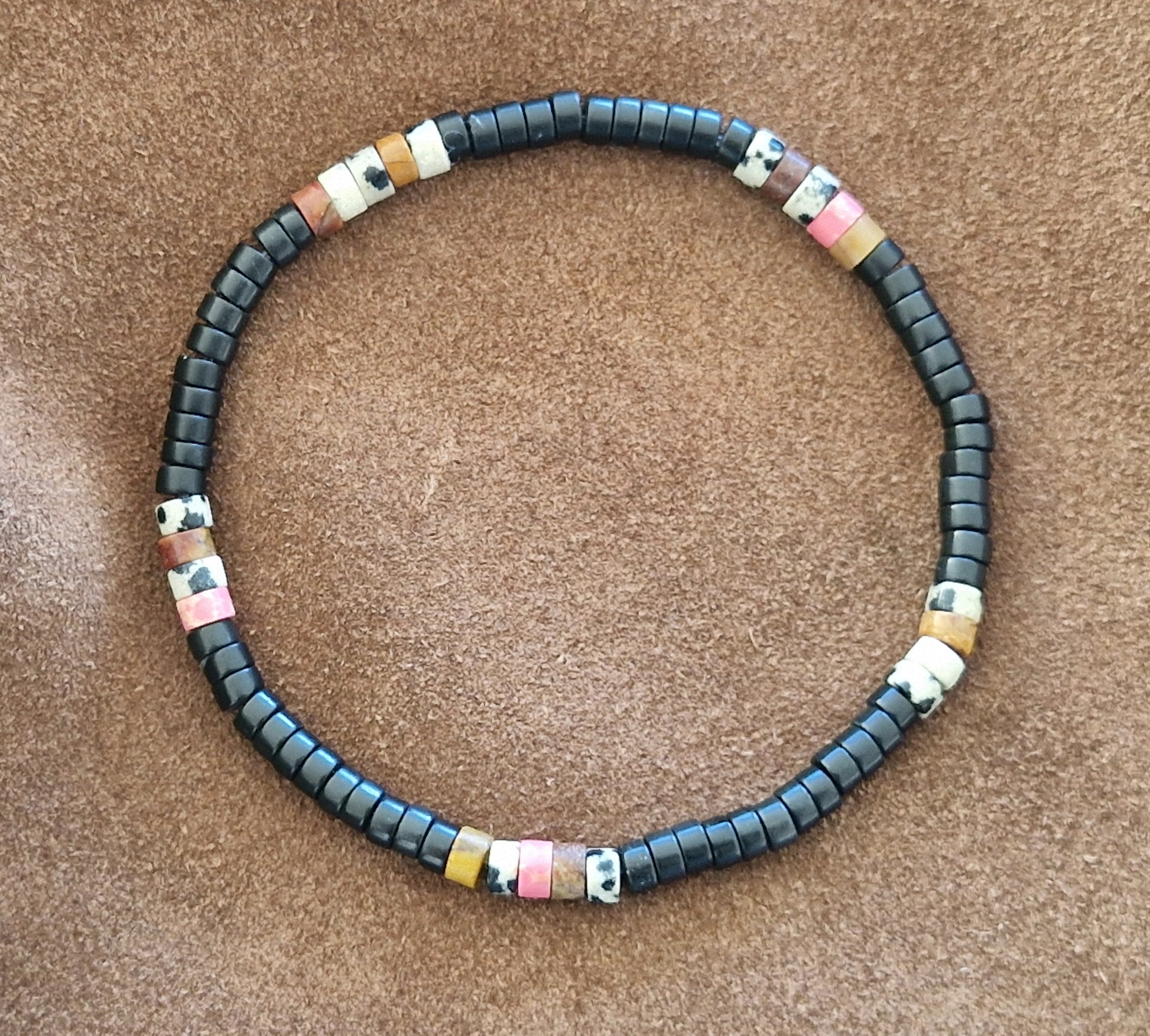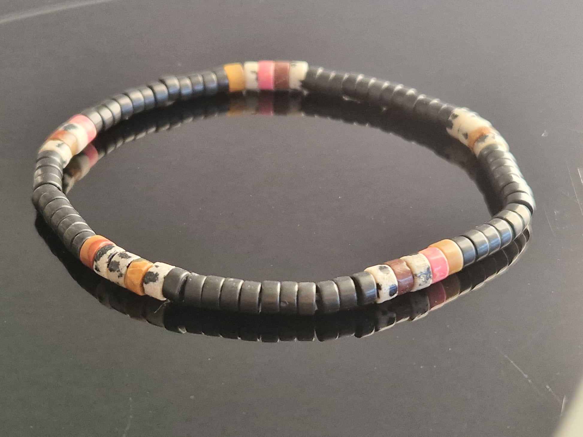Bracelet en tourmaline noire et jaspe dalmatien